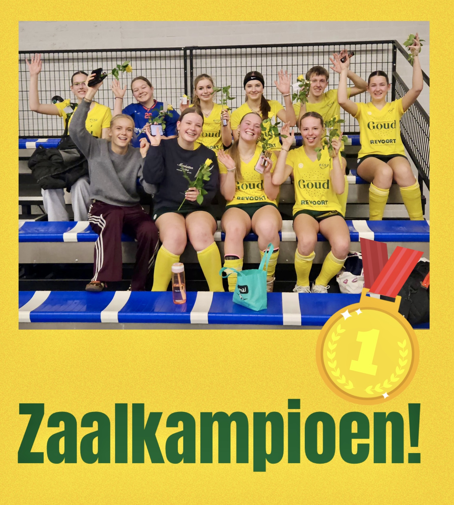 Het MO16-1 team speelde afgelopen zaterdag haar laatste zaalwedstrijden in Veendam. Beide wedstrijden werden overtuigend gewonnen en hiermee is het team ongeslagen zaalkampioen! (op de foto ontbreken Emmily & Pip)